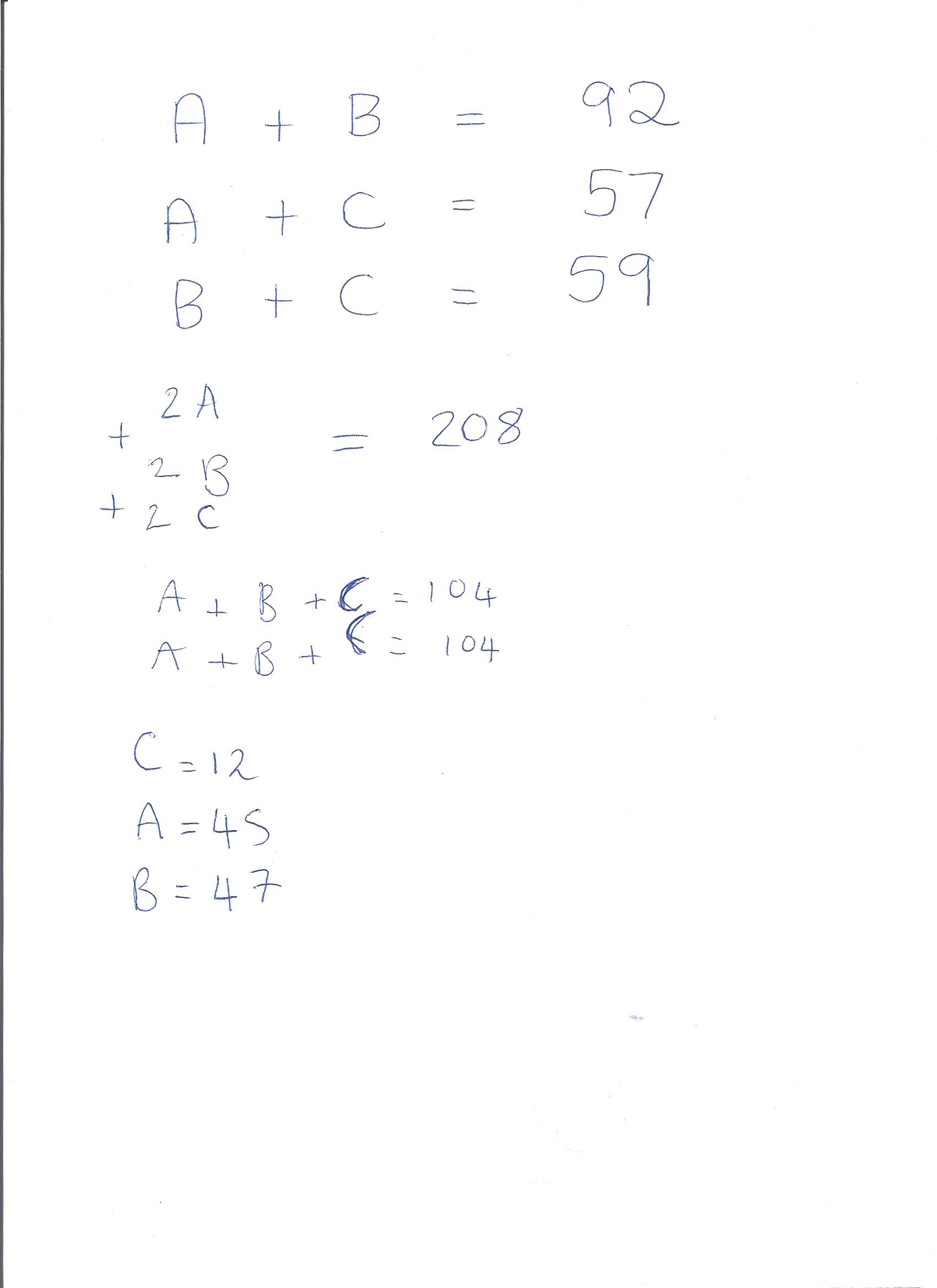 I set this problem today, during a lesson in which we had been looking at simultaneous equations with 2 unknowns: